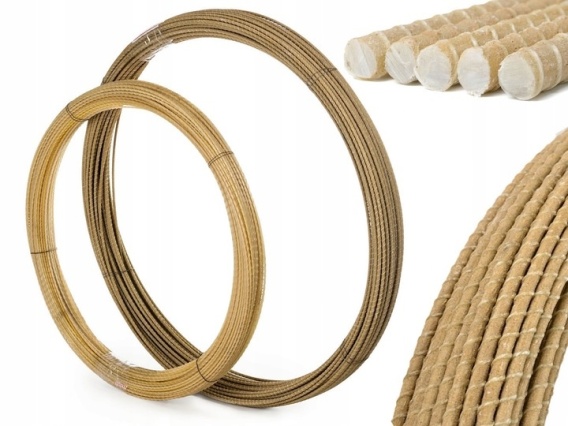- Pręt zbrojeniowy kompozytowy o średnicy 4 mm, jest odpowiednikiem zbrojenia stalowego o średnicy 6 mm